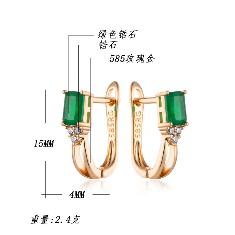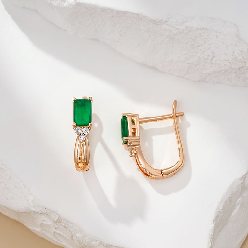 Brincos de pino quadrados em ouro rosa com zircónia verde